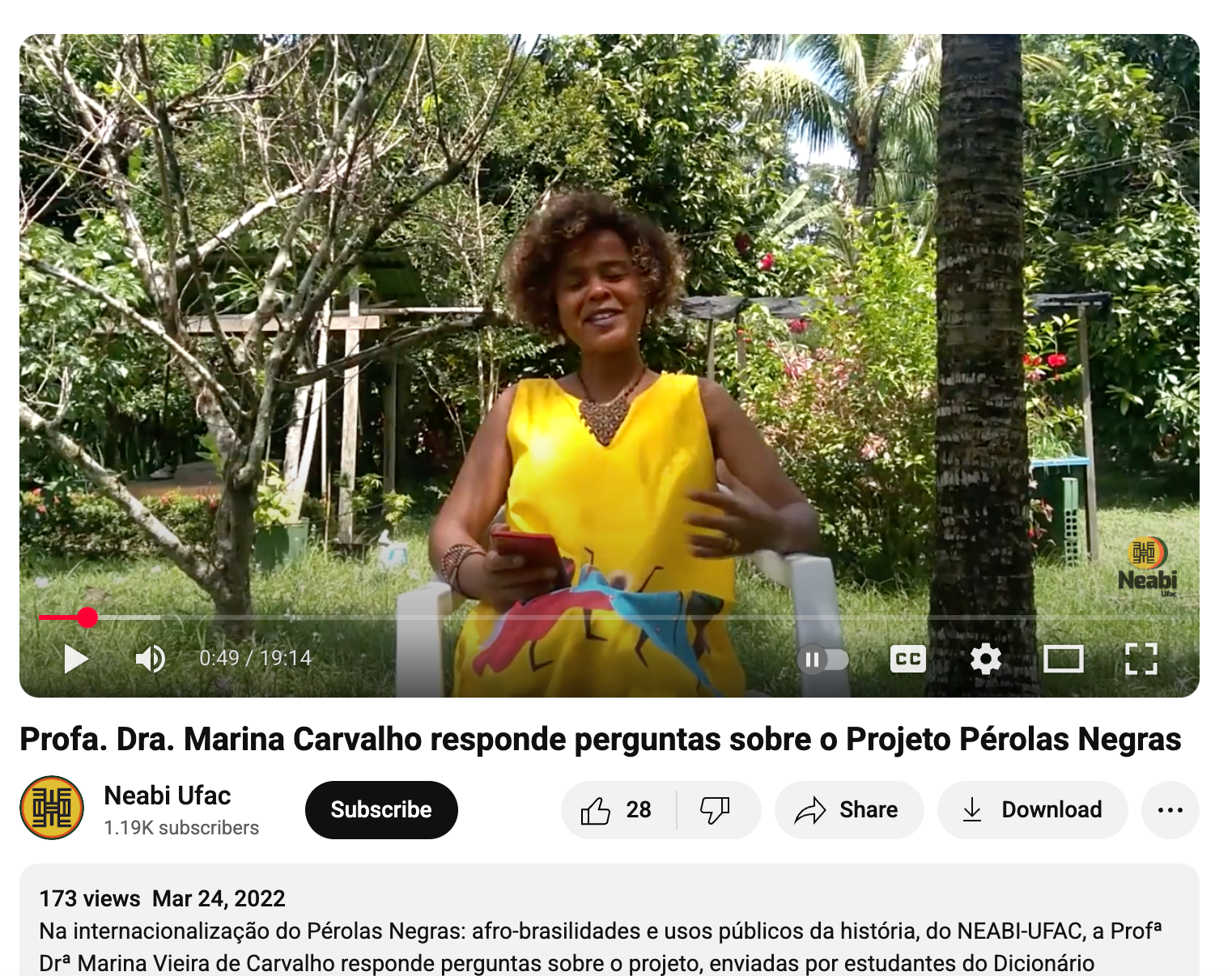 As part of this mission, NEABI/UFAC developed the teaching-and-research initiative Black Pearls: Afro-Brazilianities and the Public Uses of History, led by Professor Marina Vieira de Carvalho. This section features a video compiled from students’ emails to Professor Carvalho, each posing a question about the project that they wished her to discuss.